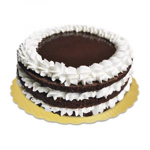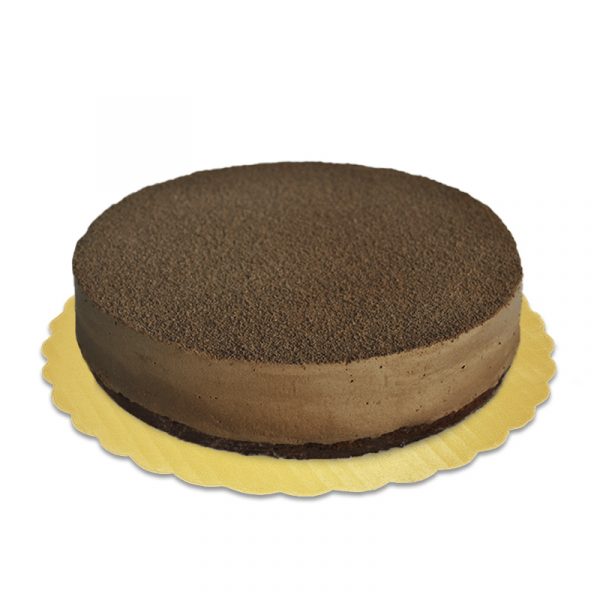 Mousse de chocolate oscuro sobre pan de chocolate.